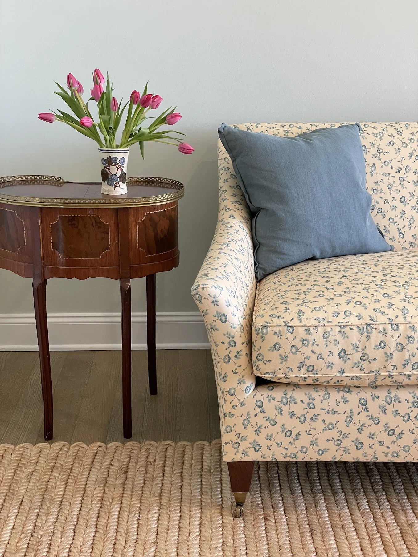 She brought in beautiful fun prints into the spaces she designed as well as designed special custom pieces mixed with timeless antiques.